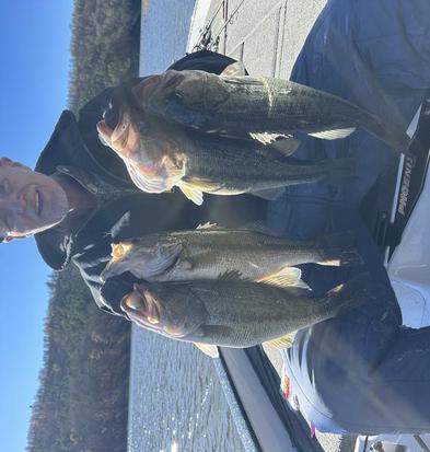 Good baits of choice that can catch different species can range from finesse tactics such as drop shots, Ned rigs, and soft plastic shad imitation baits rigged on a jig head, to more power fishing with moving baits such as crankbaits, jerkbaits, and big swimbaits. The weather as mentioned before as well as wind or lack of on some days will determine the pattern for the day on using the finesse or power fishing approach.
